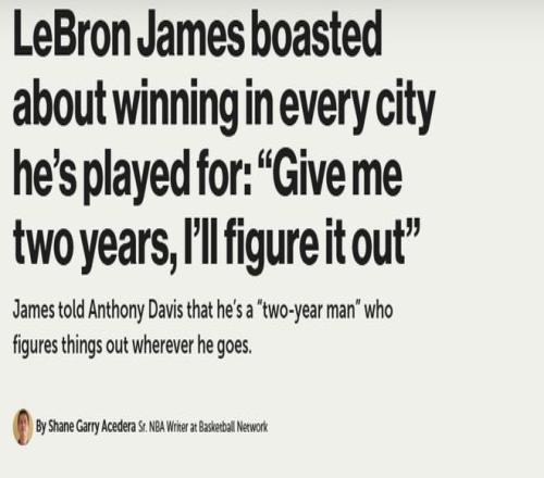 尽管在场众人都清楚他的夺冠履历,詹姆斯仍特意强调:自己在每座城市的“第二个赛季”都能带队夺冠。他说:“给我两年时间,我就是‘两年夺冠型’球员。迈阿密的第二个赛季——夺冠;回到克利夫兰的第二个赛季——夺冠;湖人的第二个赛季——夺冠。给我两年,我就能搞定一切。”
