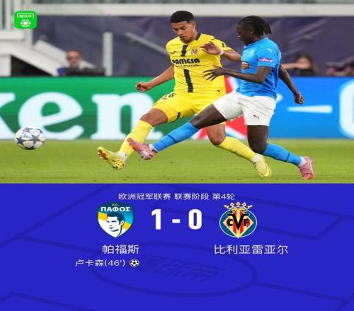 北京时间11月6日,欧洲冠军联赛联赛阶段第4轮展开较量,帕福斯迎战比利亚雷亚尔。下半场塞马开出角球,卢卡森头球破门。最终帕福斯1-0战胜比利亚雷亚尔斩获队史欧冠首胜