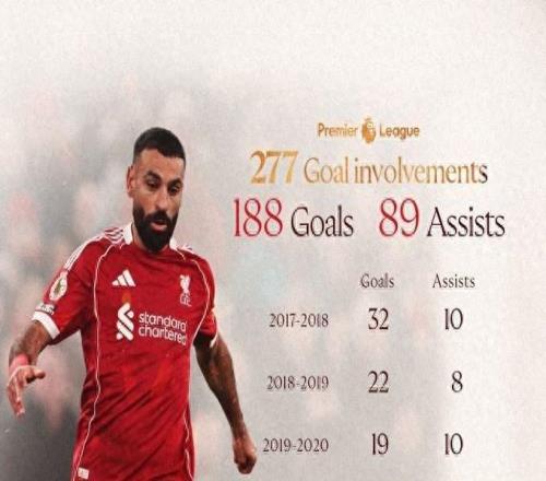 萨拉赫英超生涯已参与280球,超越兰帕德独占历史第三