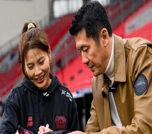 杨晨到访勒沃库森主场拜耳竞技场,沈梦露接待并陪同参观